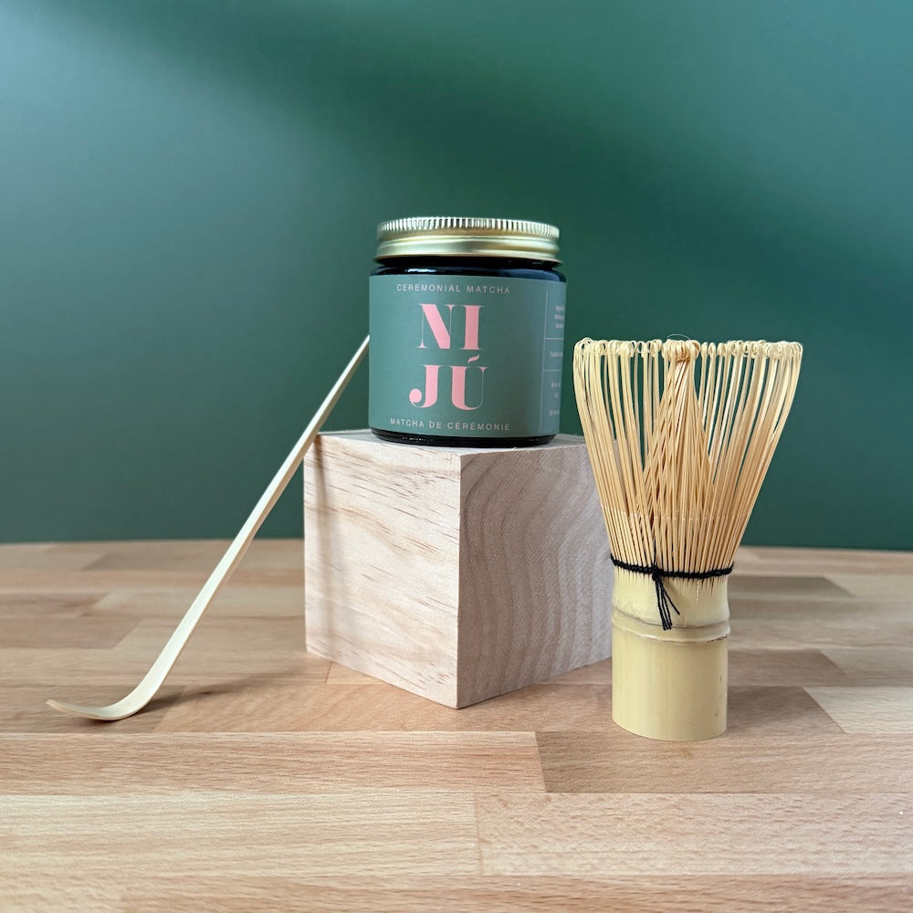 The basics that you need to get started, this set contains the traditional matcha making duo. A bamboo whisk and bamboo scoop are accompanied by a jar of Niju Ceremonial Grade Matcha, perfect for gift giving or if you are trying matcha for the first time!