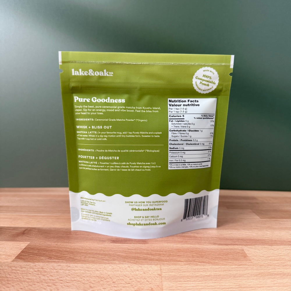 Lake & Oak Tea Co. - Purely Matcha - Organic Ceremonial Grade Matcha (80g Bag)