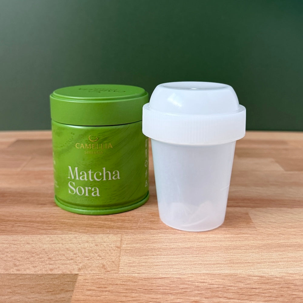 Enjoy matcha anywhere with our Matcha On-The-Go bundle which includes one of our mini matcha shaker cup and a 40g tin of Matcha Sora.